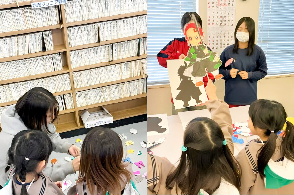 図書館でこの日のために生徒たちが企画・作成した遊びを催し、楽しみました。
