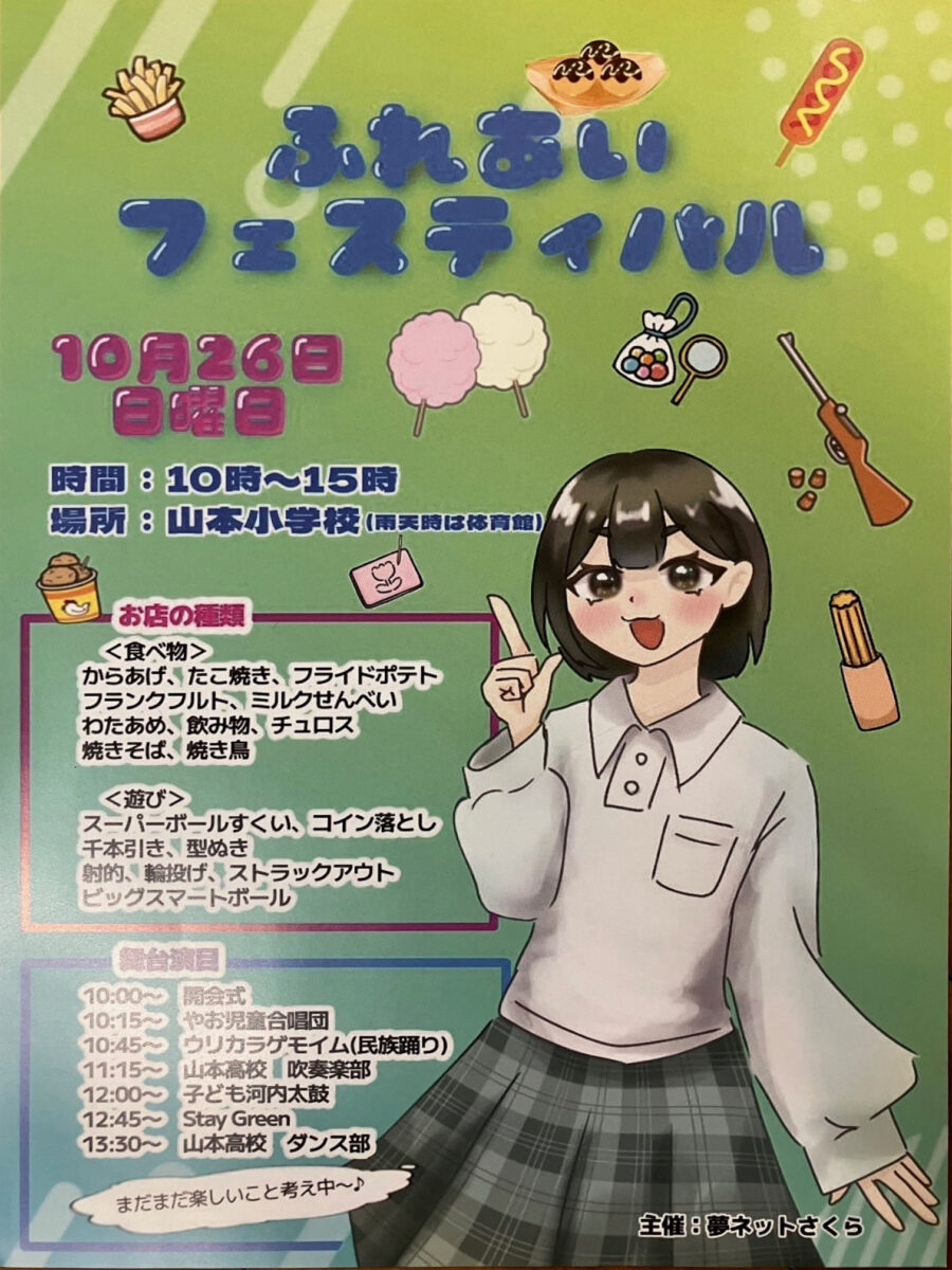 当面のイベントは「部活動体験・見学会(10/25土)」「ふれあいフェスティバル(10/26日)」「八尾市合同文化祭(11/16日)」です。みなさん見に来てくださいね。