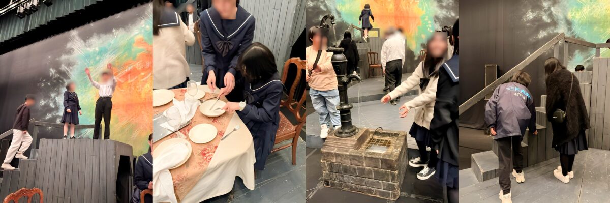 終了後はバックヤードツアーを行い、様々な大道具や舞台衣装を興味津々に見て回りました。本校生徒にとっても文化祭などの参考になったのではないでしょうか?