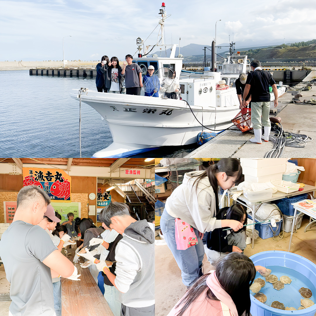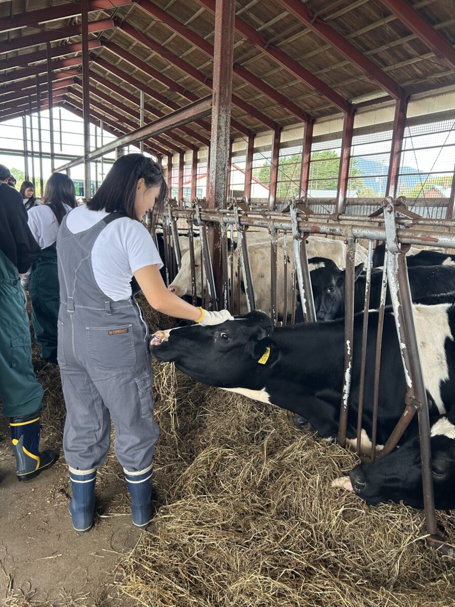 マルベリー体験ではホタテの殻剥きや牛の乳絞り、農作業などの体験を行いました。