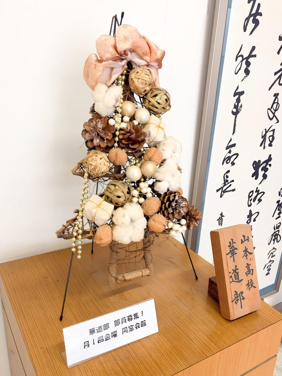 本館のエントランスにも華道部の素敵な作品が飾られていました。