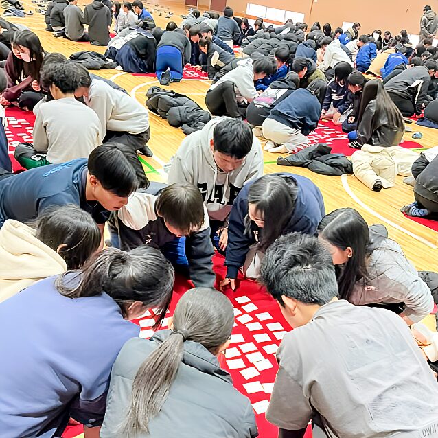 百人一首大会(2年生) 2026.01.22 79回生 学校行事 その他 今日は待ちに待った百人一首大会でした。昨年よりは札を多く取れるようになっている生徒が多く見られました!優勝したのは、、、6組です‼️先生方の読み方もさまざまで、非常に盛り上がった2時間でした。